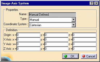 Axis System: press this button to display the Image Axis System dialog box (only available if you installed the ELFINI Structural Analysis product).