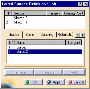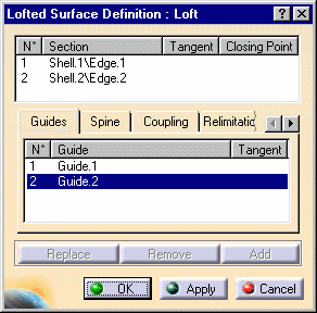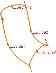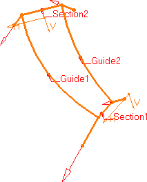 or two planar section curves along a computed or user-defined spine. The surface can be