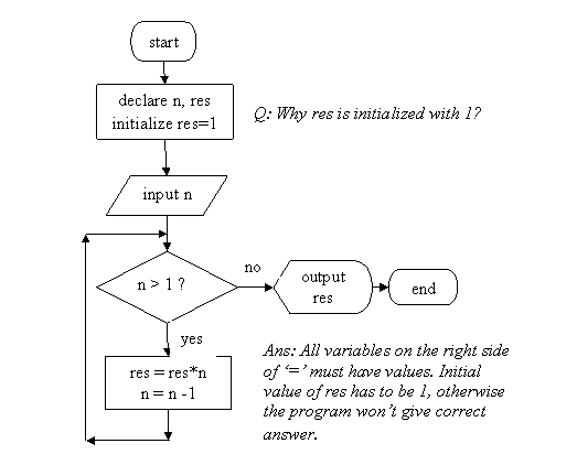 a flowchart for a program which calculates the factorial (n!) of n. n is an