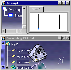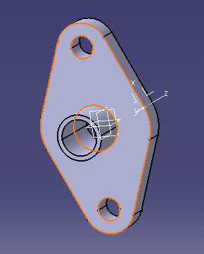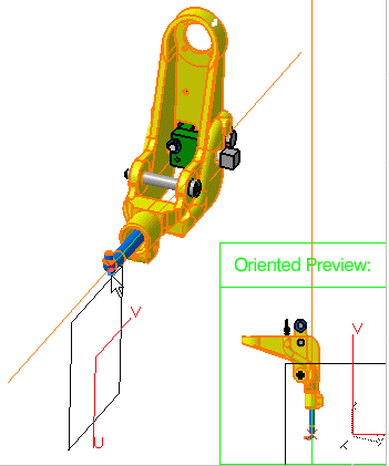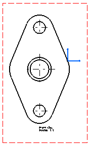 Click in the drawing to end the view creation. The part local axis system appears in the